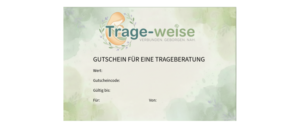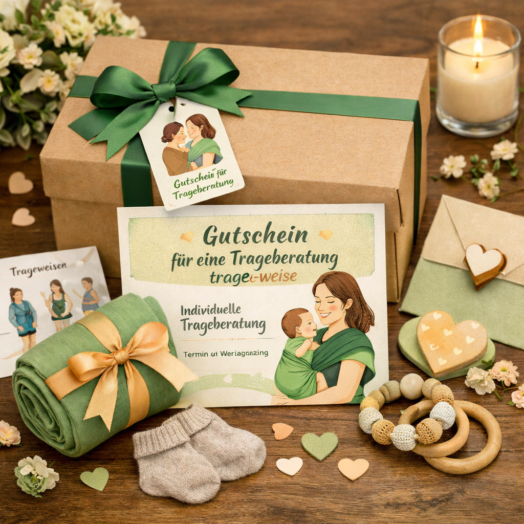Schenke statt dem zehnten Baby-Body oder dem zwanzigsten Kuscheltier doch etwas Praktisches! Ein Gutschein für eine Trageberatung kann bereits in der Schwangerschaft oder mit Baby eingelöst werden.